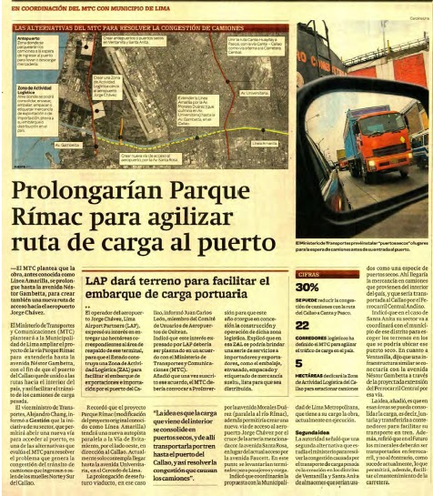 - Pedimos concretar un Estudio de Plan de Accesos a puerto y aeropuertos (Gambetta, vías camioneras a Centro y Sur de Lima y la incorporación de Tren a Puerto).